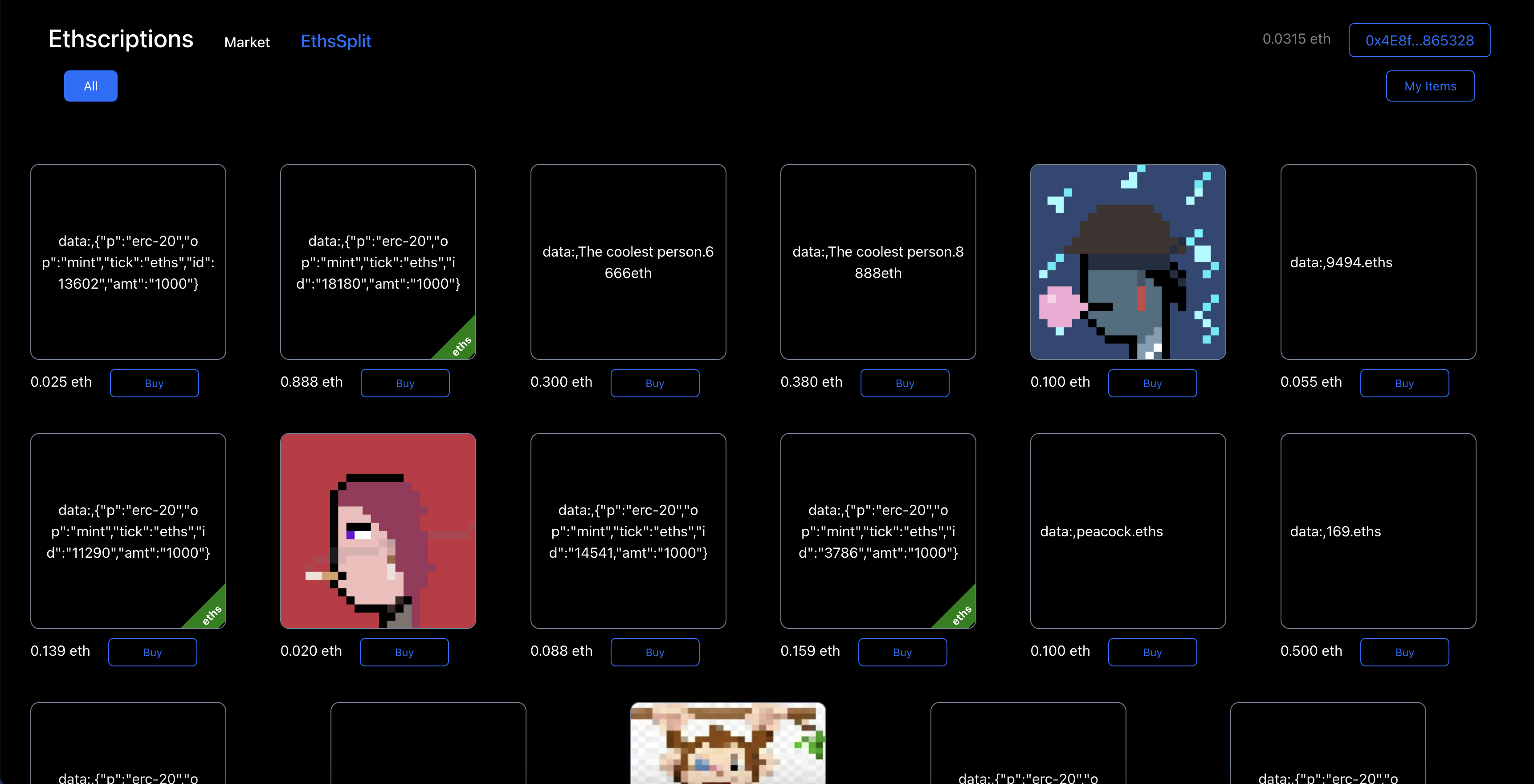 EthsMarket provides the first on-chain trading market for Ethscriptions, which has been verified over time. Any user can use EthsMarket to trade ethscriptions. We will provide identification services for some important ethscriptions, and identified ethscriptions will automatically be labeled as verified. Users can differentiate the authenticity of ethscriptions in a collection based on the label. The trading market will charge a 2% transaction fee. OG user service fee is reduced by 30% .